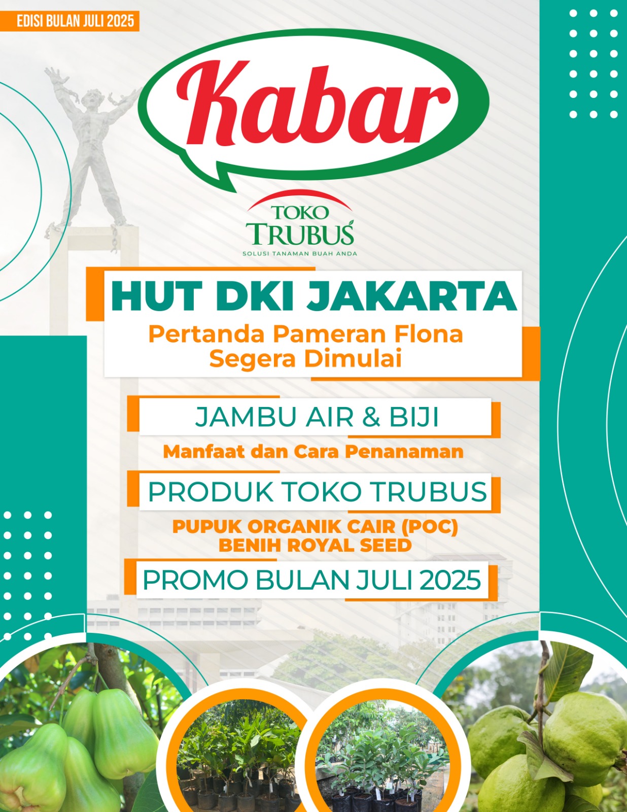 Kabar Toko Trubus Juli 2025 hadir dengan info Pameran Flona, promo bibit jambu, serta produk unggulan POC dan benih Royal Seed untuk berkebun sehat produktif.